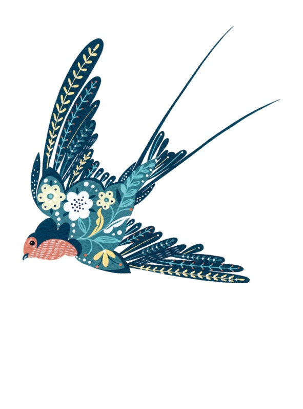 Floral Blue Swallow Card
