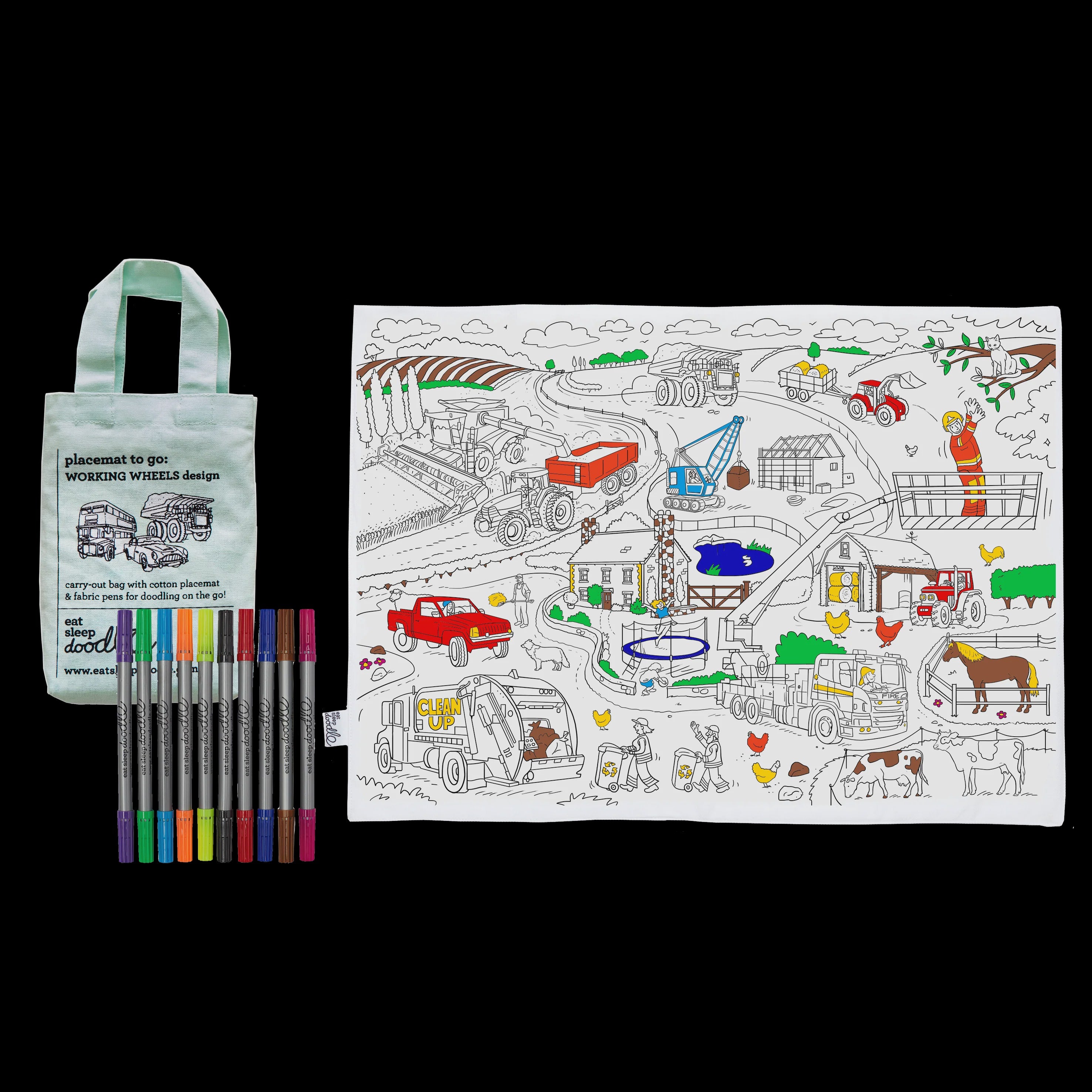 Working Wheels Placemat to Go- Colour In